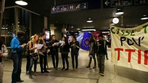 8 juni 2015 nemen onze Europese parlementairen de Thalys naar Straatsburg om te onderhandelen over de TTIP, met verschillende organisaties en burgers waren wij aanwezig om hen uit te wuiven en hen er aan te herinneren dat de TTIP niets goeds zint met de burger en het milieu.
